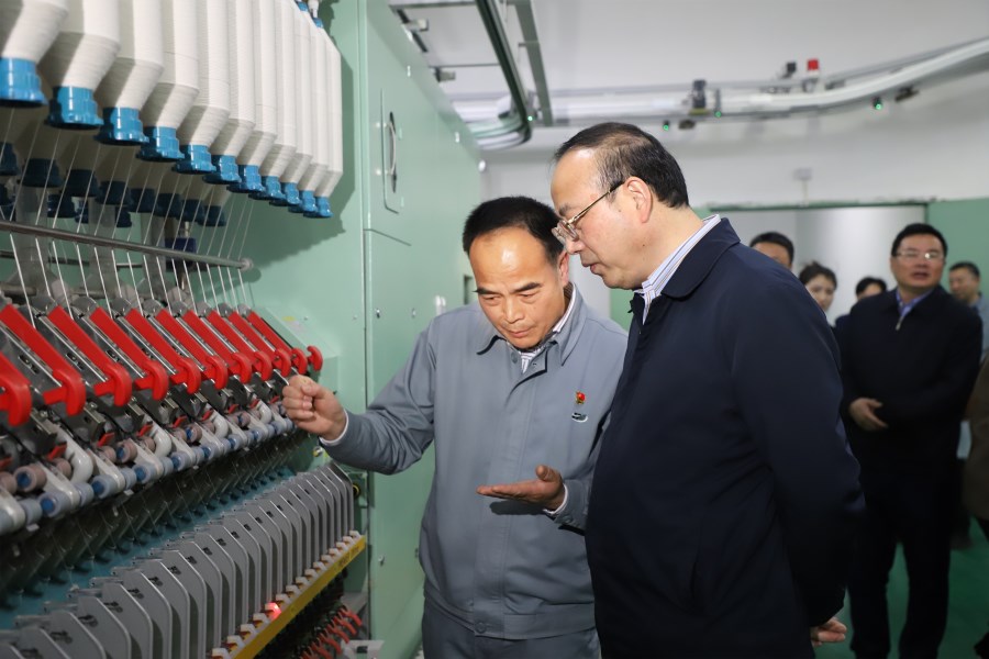 在聽(tīng)取匯報(bào)后,張祥安書記對(duì)企業(yè)在去年疫情期間取得的成績(jī)給予充分肯定,對(duì)智能工廠改造取得的成果給予高度認(rèn)可,稱贊華茂是安慶的驕傲、紡織行業(yè)的驕傲。他勉勵(lì)華茂要勇于改革創(chuàng)新,緊盯市場(chǎng)前沿抓好產(chǎn)業(yè)鏈延伸,實(shí)現(xiàn)更好發(fā)展。他要求,市各級(jí)黨委政府和領(lǐng)導(dǎo)干部要強(qiáng)化服務(wù)意識(shí),積極主動(dòng)幫助企業(yè)解決困難和問(wèn)題。