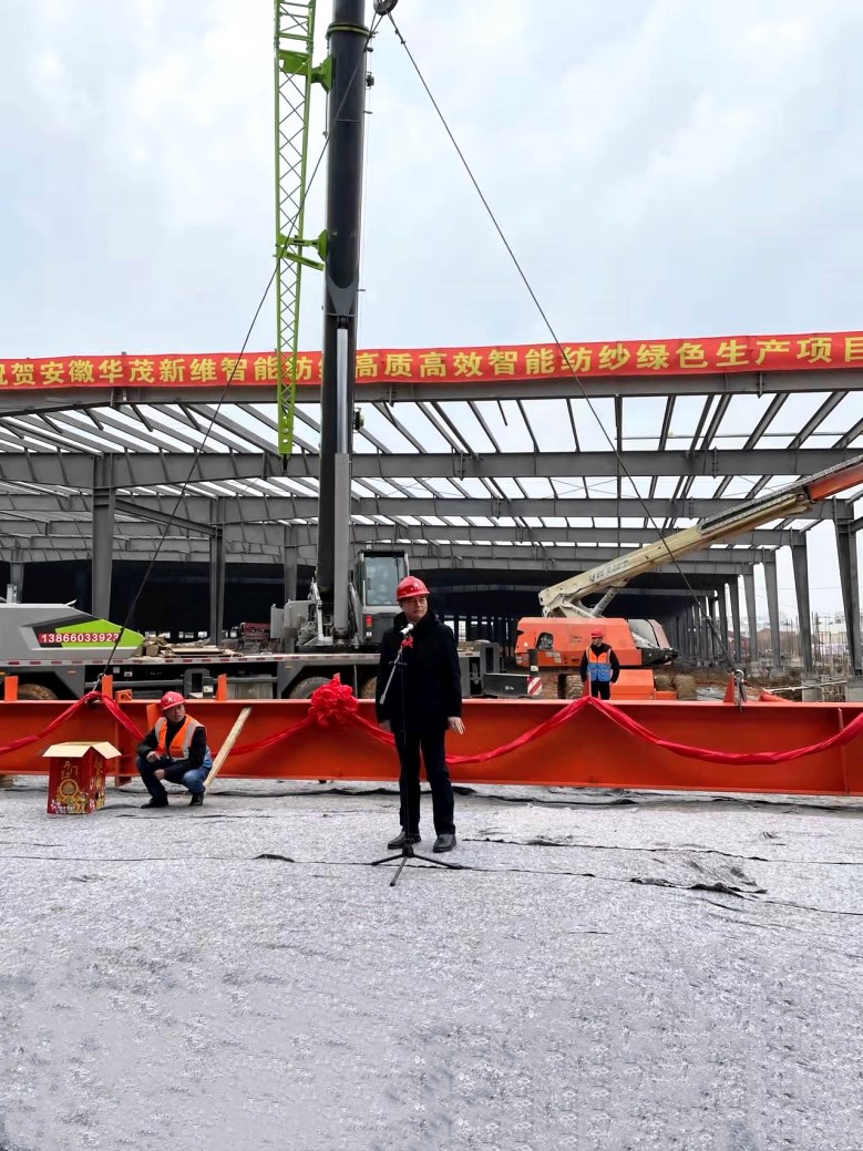 安徽華茂新維公司高質高效智能紡紗綠色生產項目順利實現主廠房大梁合攏