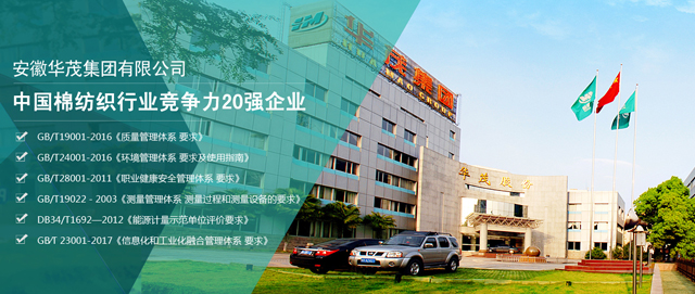 華茂現年產"乘風"牌 Ne5-330 高檔紗線 10萬噸、"銀 波"牌 120-360 厘米幅寬高檔坯布面料 10000 余萬米。 紗線和坯布產品雙雙榮獲"中國名牌產品"、"全國用戶 滿意產品"和"安徽工業精品"等稱號。